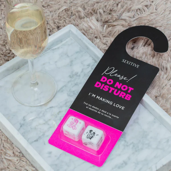 El dado negro simboliza la previa y el dado fucsia, la posición sexual. Contiene dos dados de acrílico de 25mm